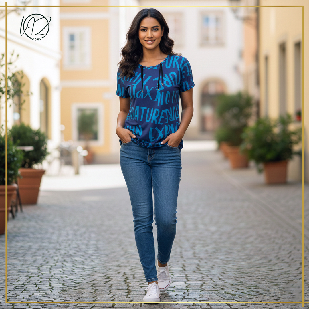 Featuring a classic neckline and versatile design, these tops can be easily paired with jeans, trousers, skirts, or leggings. From casual basics to trendy statement styles, our ladies tops and T-shirts are ideal for creating chic, confident looks for every season.
