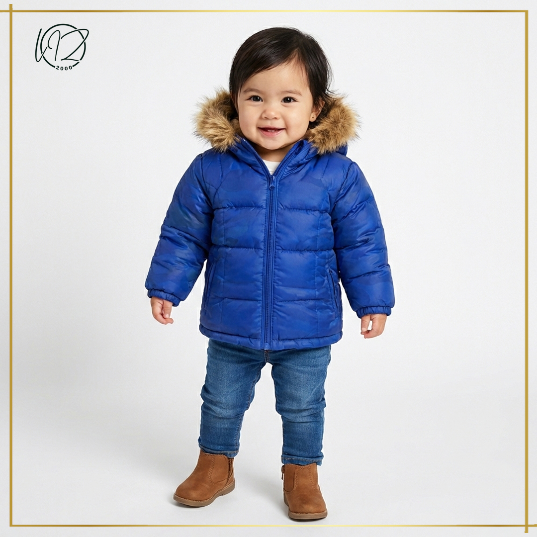 Brighten up the coldest days with the Arctic Blue Puffer. This jacket isn't just about high-visibility style; it’s built for serious winter warmth. Featuring a unique tonal camouflage pattern in a bold cobalt blue, it offers a modern twist on a classic outdoor look. Engineered to keep your child cozy whether they are waiting for the bus or building a snow fort.